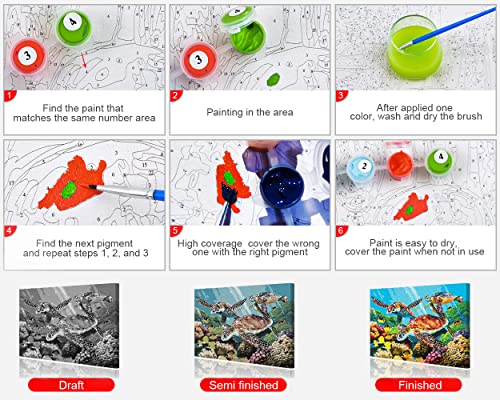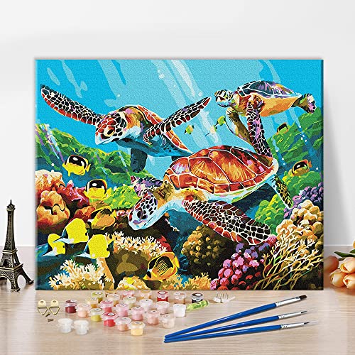 TISHIRON Dipingi con i numeri, tartaruga marina, pigmento acrilico, pittura fai da te, pittura a olio su tela, pittura con i numeri, tartaruga marina, acquerello per adulti, bambini, principianti,