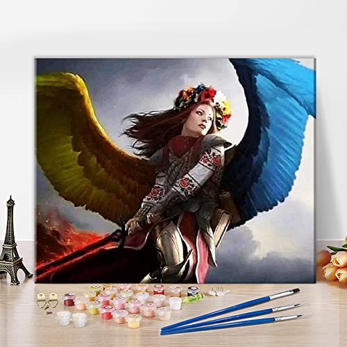 TISHIRON Kit fai da te per pittura con i numeri, per adulti, ali colorate in base ai numeri, per ragazze ucraine, pittura, decorazione per la casa, per adulti e bambini, artigianato 16 x 20 pollici
