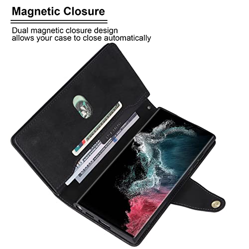 TISIM Custodia Cover per Samsung Galaxy S22 Ultra, Custodie Pelle PU Resistente con Cavalletto Chiusura Magnetica, Flip Caso in PU Pelle Premium Portafoglio Custodia per Samsung Galaxy S22 Ultra Nero