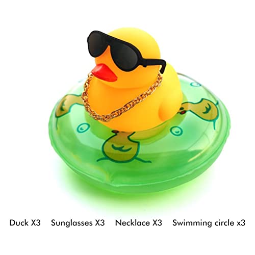TiSkying Giocattoli da Bagno Anatra, Papera in Gomma da Cartone Animato con Anello di Nuotata,Occhiali da Sole,Collana, Giocattoli da Bagno Galleggianti Ornamenti per Auto Decorazione del Cruscotto