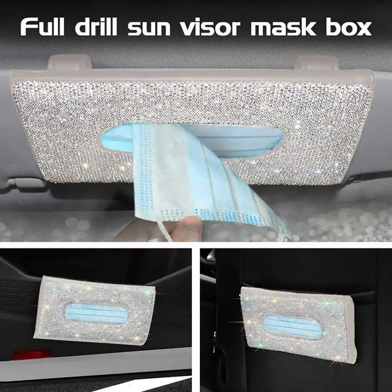 Tissue BoxeCar sun visor tissue box holder, crystal sparkling napkin holder, PU leather back seat tissue box, women's auto parts