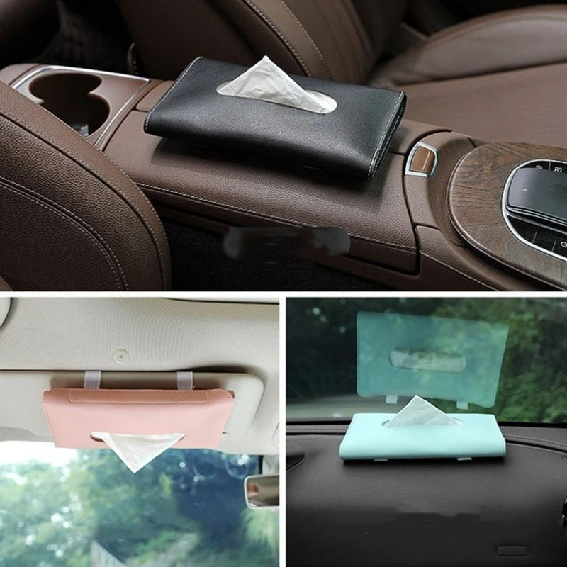 1 Pcs Car Tissue Box Towel Sets Car sun visor leather tissue box Hanging Paper Towel Clip Car Napkin Holder for Sun Visor