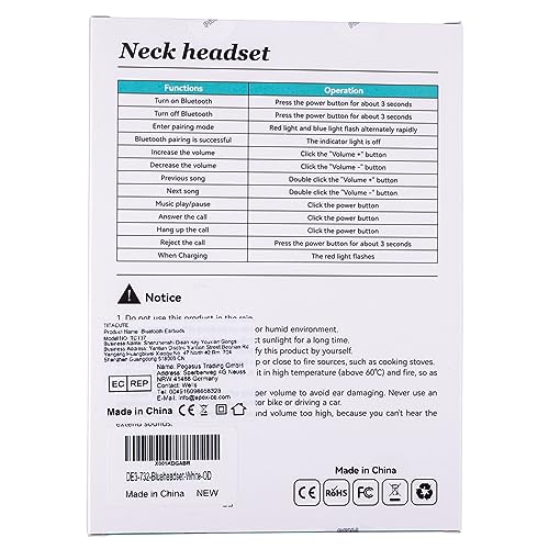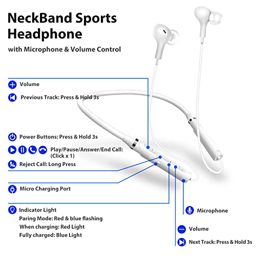 TITACUTE Cuffie Bluetooth Senza fili con Archetto Sport per il collo Riduzione del Rumore del Microfono HD, Cuffie Stereo HiFi compatible con iPhone 13 Pro Max 12 11 Samsung S22 S21 S20 FE A53, bianco