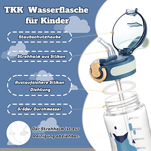 TITIROBA TKK - Borraccia per bambini, 250 ml, a prova di perdite, con cannuccia, senza BPA, utilizzabile con una sola mano, colore: Blu