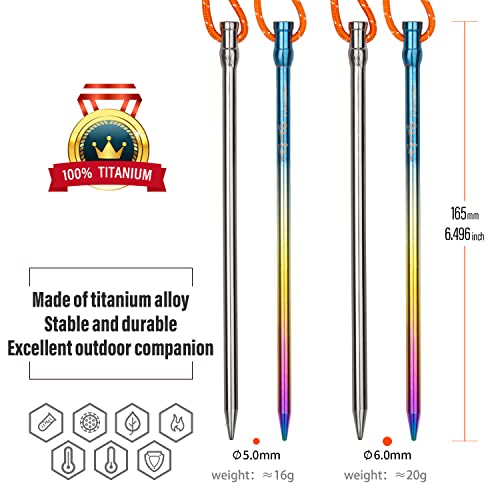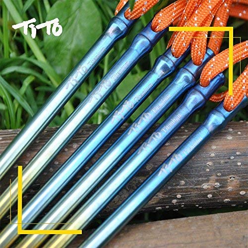 TiTo Titanium Picchetti Campeggio Ultraleggeri Portatili Titanio Chiodi Picchetti Tenda Robusto Accessori per Tende da Esterno per Giardino Campeggio Pesca(Colore1 6pcs*5.0*165mm)