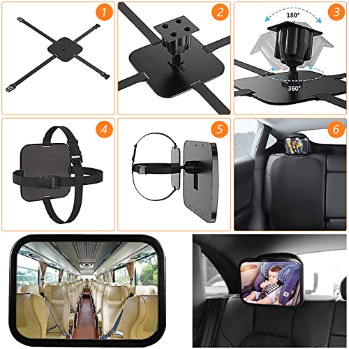 Facile da installare: puoi installarlo facilmente in pochi minuti senza strumenti di installazione ausiliari. lo specchietto per auto per bambini ha una doppia cinghia con fibbia che si lega al poggiatesta per fissare lo specchietto in modo che non si muova anche se colpisci dossi o stai guidando su strade più accidentate.