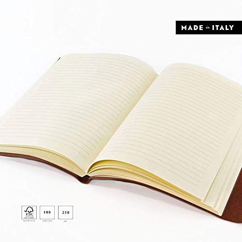 Tivoli Diario/Taccuino in Pelle riciclata, Realizzato a mano da Artigiani Toscani, Include Scatola Regalo, A5 (15x21 cm) Marrone Chiaro
