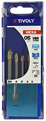 TIVOLY 12000770001 - Set di 5 punte per vetro Technic, codolo esagonale, Ø3, 4, 5, 6, 8 mm