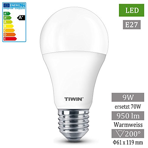 TIWIN 5er Sparset NUOVO 9W E27 lampadina LED Spotlight bianco caldo A + / sostituiti circa 70 Watt / 950 lumen / 2700K / 200 gradi/SMD 2835