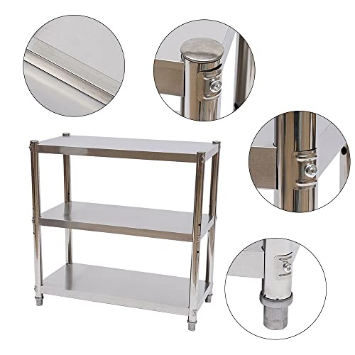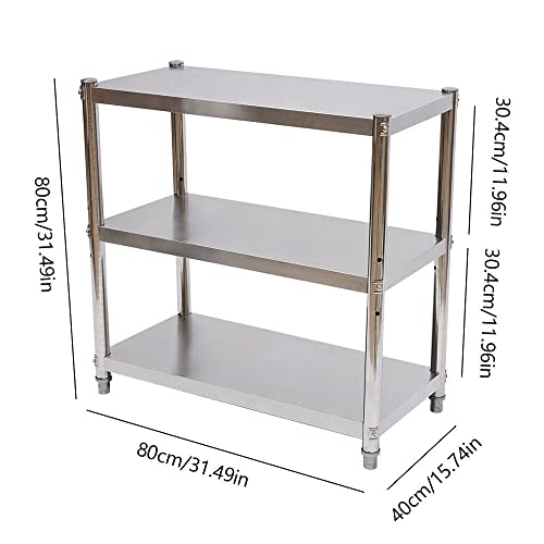 TIXBYGO Scaffale da cucina in acciaio inox, 3 ripiani, 80 x 80 x 40 cm, per carichi pesanti, per gastronomia, tavolo da lavoro, tavolo da lavoro