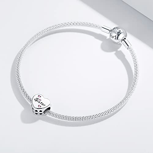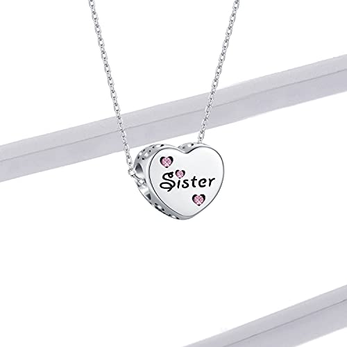 TIZU Charms Sorella in Argento 925 a Forma di Cuore Charm Famiglia Sister Compatibili Bracciale