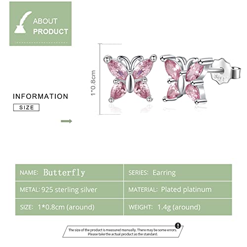 MATERIALE Argento sterling 925, Placcato platino e AAA+ Zirconia Rosa. Gli orecchini a farfalla in argento 925 placcato oro bianco 14K non si appannano e non perdono la loro lucentezza. Senza nichel, senza piombo e senza cadmio, adatti alla pelle sensibile