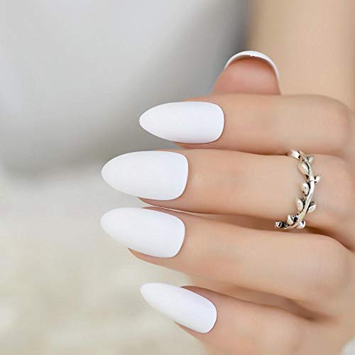 TJJL Unghie finte 24Pcs Chiodi a stiletto corto di colore bianco opaco puro Design semplice Strumenti a punta per unghie finte fai da te per unghie finte