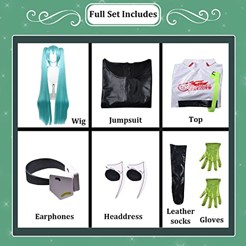 Tjmiaohao Anime Hatsune Miku Costume Cosplay Vestito Gioco di Ruolo Uniforme Set Completo Halloween Carnevale Abito Vestito Con Tuta Parrucca Copricapo Auricolari per Donne Ragazze (M)
