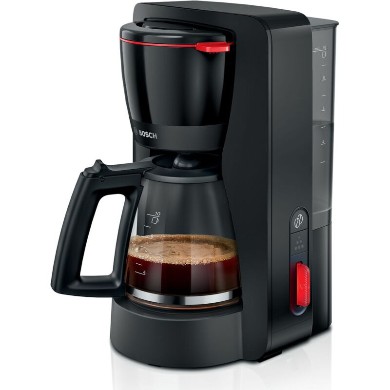 La caffettiera con serbatoio dell'acqua estraibile e funzione keep warm. L'emozionante design della superficie con riflessi opachi e lucidi dà vita alla cucina. Bosch TKA3M133. Tipo di prodotto: Macchina da caffè con filtro, Capacità tanica acqua: 1,25 L, Tipologia di caffè utilizzato: Caffè macinato, Vaschetta per caffè preparato: Brocca, Capacità in tazze: 15 tazze. Potenza: 1200 W. Colore del prodotto: Nero Prestazione Vaschetta per caffè preparato Brocca Capacità in tazze 15 tazze Macinatore integrato No Piastra riscaldante Sì Posizionamento dell'apparecchio Superficie piana Tipo di prodotto Macchina da caffè con filtro Capacità tanica acqua 1,25 L Tipologia di caffè utilizzato Caffè macinato Ergonomia Tipo di controllo Pulsanti Display incorporato No Indicatore del livello dell'acqua Sì Colore del prodotto Nero Lunghezza cavo 0,8 m Interruttore di accensione on/off Sì Facile da pulire Sì Facile da utilizzare Sì Supporto per filtro staccabile Sì Filtro da caffè Sì Gestione