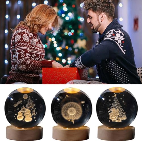 Tkerinse Sfera di cristallo 3D, luce notturna a sfera di cristallo, lampada proiettore USB per Natale, luce a sfera in cristallo con base in legno, regalo per compleanno, Natale, anniversario