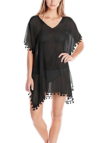 Tkiames - Copricostume da donna, in chiffon, con nappe Nero 3 Taglia unica