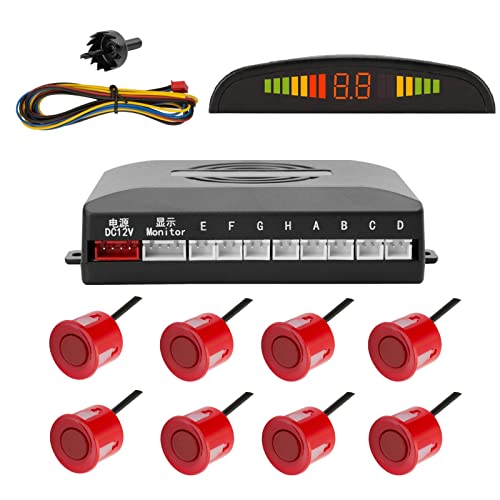 Tkoofn Auto inversione di sostegno Sensore Di Parcheggio Kit 4 sensori radar con display Led e Buzzer Rosso M04003-03