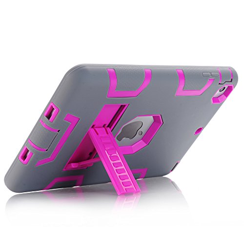 TKOOFN Cover per iPad Mini 1/2/3, Custodia Ibrida Antiurto Resistente Tre-Strati con Supporto - Griggio + Rosa Rossa