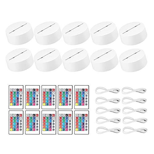 Tlilyy Base per Lampada un Luce Notturna un LED 3D da 10 Pezzi + + USB, Supporto per Esposizione di Luci un 16 Colori per Acrilico Bianca