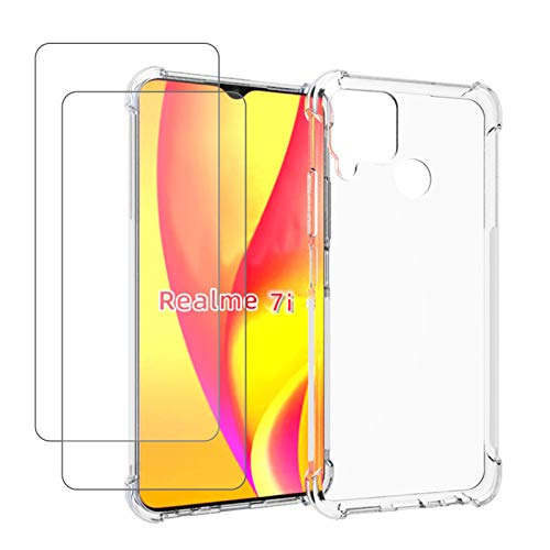 TLING Cover per Realme 7i + 2 Pezzi Vetro Temperato, Morbido Silicone Custodia Cuscino d'Aria AntiGraffio Protettiva Custodia per Realme 7i/Realme Narzo 20