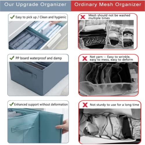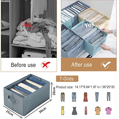 TLOXO 2 pezzi Organizer per Cassetti Jeans,7 griglie per jeans,Confezione da organizer per cassetti per armadio,divisorio pieghevole per vestiti, leggings e magliette, jeans