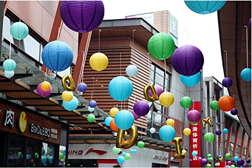 5 misure diverse per queste lanterne rotonde di carta: 10,2 cm, 15,2 cm, 20,3 cm, 25,4 cm, 30,5 cm.