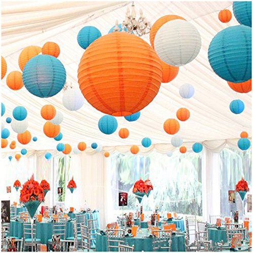 Tmade, lanterne di carta colorate per feste di compleanno, baby shower, matrimoni, feste in giardino o semplicemente per decorare casa, 12 pezzi, misure 10,2 cm, 15,2 cm, 20,3 cm, 25,4 cm, 30,5 cm, Carta, Blue 12PCS Lanterns, 12 inch(30cm)