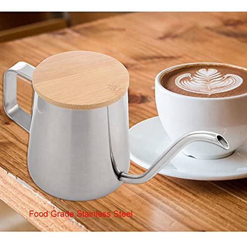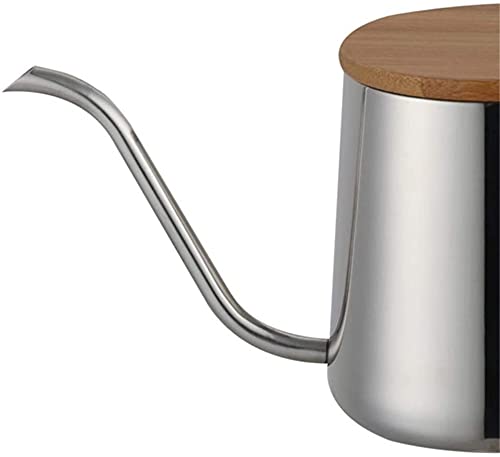 Tmand - Bollitore a collo di cigno lungo e stretto, in acciaio inox, con coperchio in legno