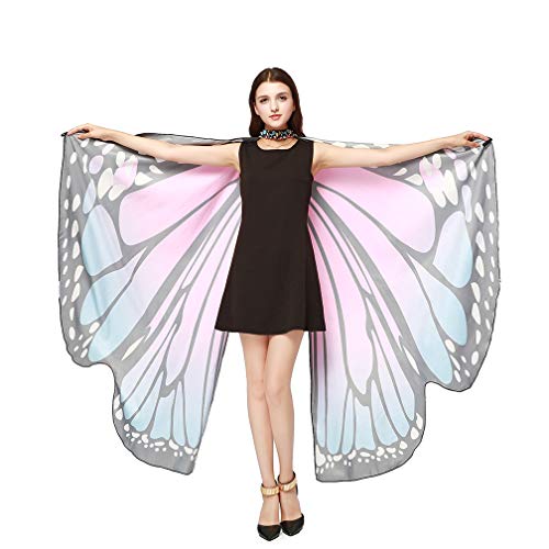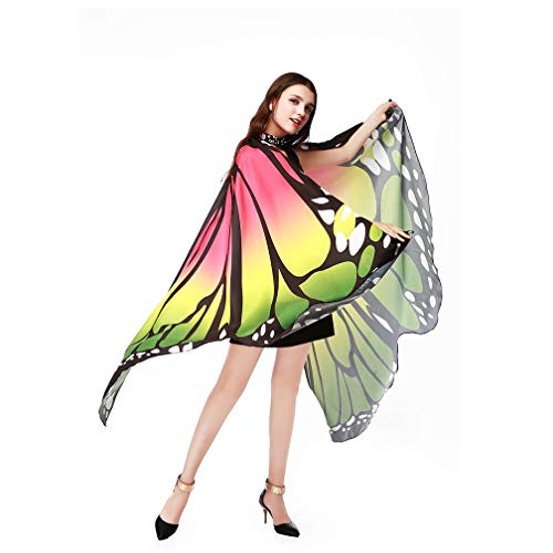 TMEOG Scialle Farfalla Donne Ali Delle Farfalle Scialle Sciarpe Ragazze Bambino Cosplay Nymph Pixie Poncho Costume Accessorio (Rosa Rossa Verde)