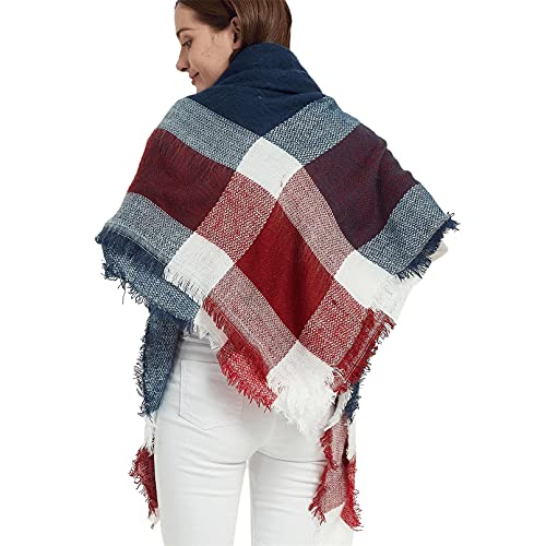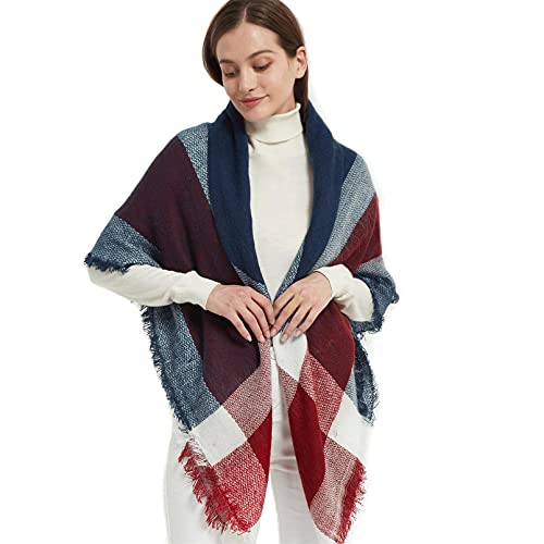 TMEOG Sciarpa Scialle Donna Autunno Invernale Moda Sciarpe Quadrate Plaid Confortevole Morbido Grandi Poncho Sciarpe Stola (A_Marina Militare(140X140cm))