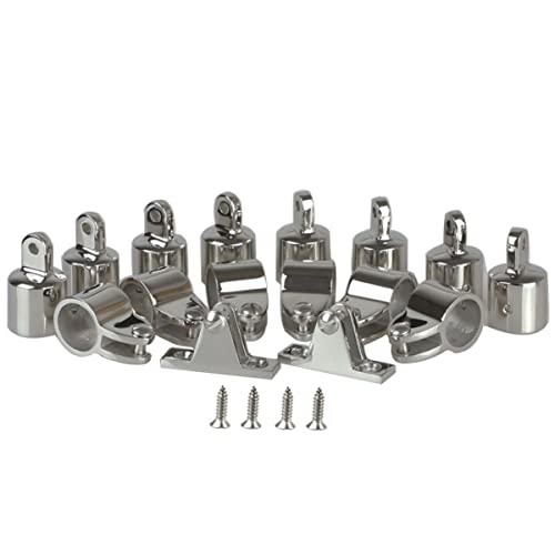 TMIL 16 Pezzi/Set Ferramenta per Raccordi per Barca, 22/25mm Tendalino Barca in Acciaio Inossidabile 316 con 6 Maniche Scorrevoli 8 Tappi Scorrevoli 2 Basi da Montagna Accessori per Yacht,25mm