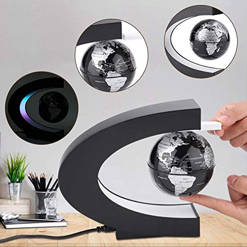 TMISHION C Forma Fluttuante Globo 4‘' con LED Luci Magnetico Campo Levitazione Istruzione Globo per Casa Ufficio Decorazione Idee Regalo - Nero