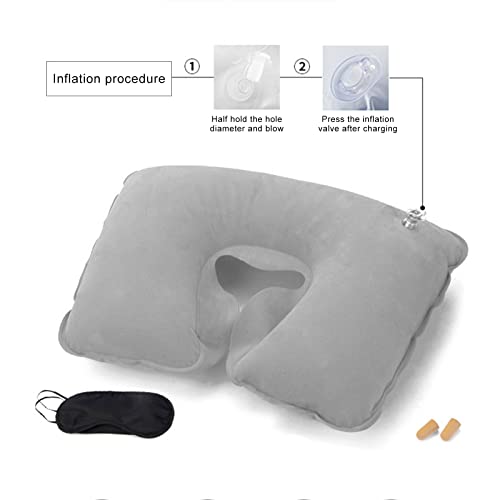 TMRBBesty Cuscino Gonfiabile a Forma di U per Supporto,Cuscino Gonfiabile a Forma di U,Cuscino da Viaggio A Forma di U,Con 1 una maschera per le orecchie,Per Aereo,Auto,Ufficio