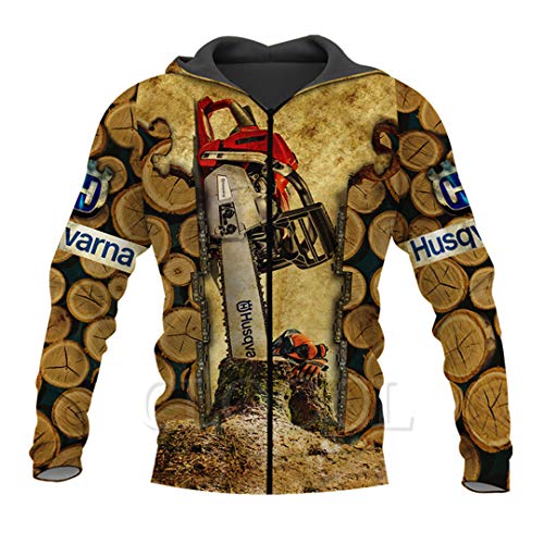 TN-KENSLY Incredibile Motosega con Cappuccio Felpa con Cerniera Cappotto 3D Stampa Girocollo Pullover Manica Lunga Top Sweatshirt 2 5XL
