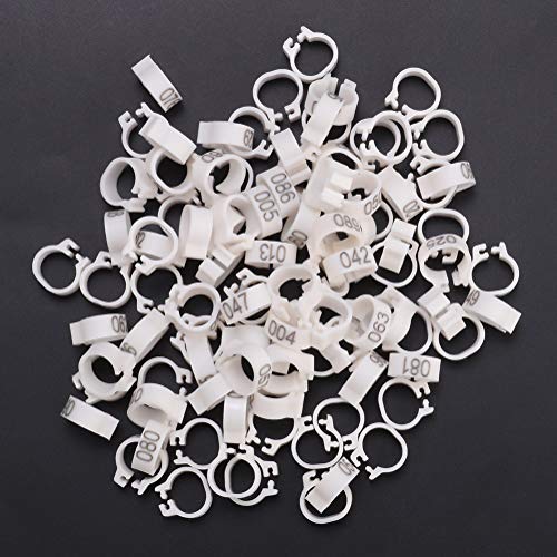 Tnfeeon 100PCS/Bag 8MM Anelli di plastica per Fasce per piccioni, 001-100 Anelli di plastica per Fasce per Uccelli in plastica numerati numerati 001-100 con Numero(Bianca)