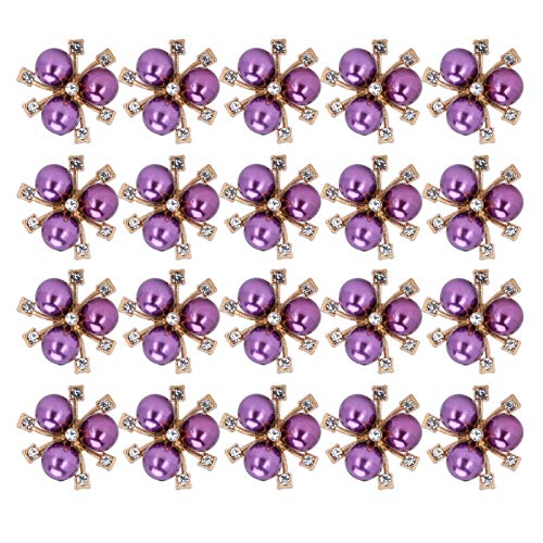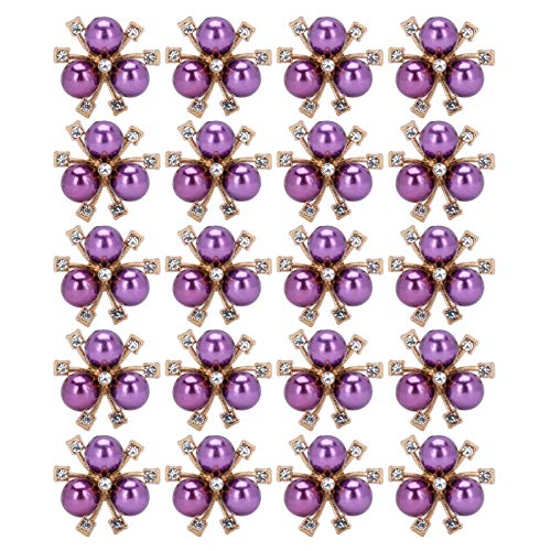 Tnfeeon 20 Pezzi Strass abbellimenti di Fiori di Perle Bottoni di Fiori di Perle Artigianali per Abbigliamento Fai da Te Spilla Polsino Accessori Gioielli di Moda(Viola)