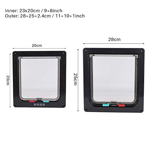 Tnfeeon Porta per Gatti Quadrata per Cani, Interruttore Acrilico controllabile bidirezionale Porta per Animali Domestici Porta con Aletta per Gatti Trasparente (28 x 25 x 2,4 cm)(Nero)
