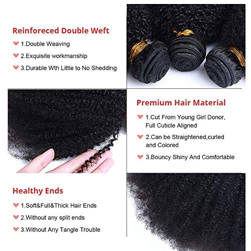 TNICE Capelli Umani Ricci Tessitura brasiliana afro Capelli Brasiliani Naturali Extension (12 14 16 Pollici) Veri Tessitura Capelli Umani Ricci curly Human Hair 3 Bundles Naturale Colore Nero