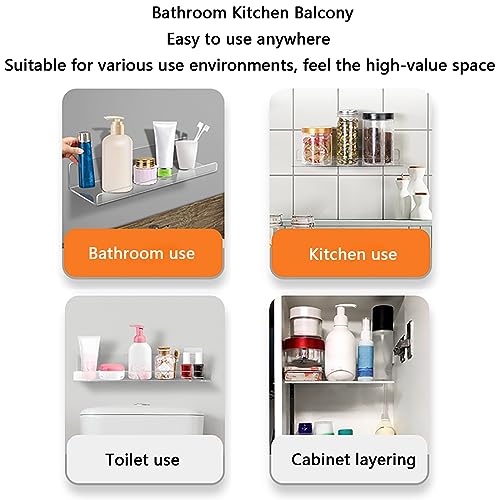 ◆ [Facile da installare] Questo ripiano in acrilico è dotato di adesivi antitraccia, devi solo strappare la pellicola protettiva dietro gli adesivi antitraccia, incollarla nella posizione che desideri installare, spremere le bolle d'aria nel e installare lo scaffale pronto per l'uso dopo