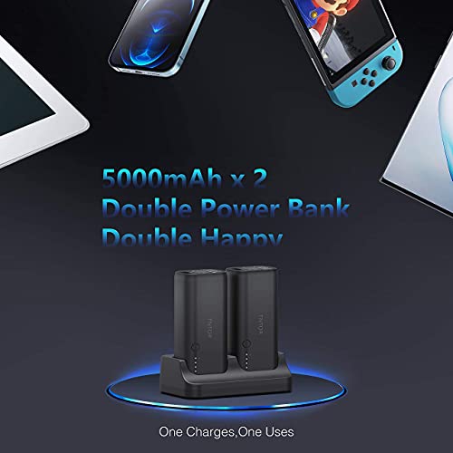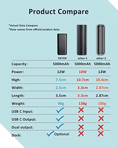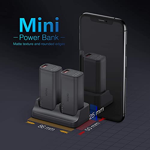 TNTOR Batteria esterna [2] con supporto di ricarica, batteria portatile (5000 mAh+5000 mAh) batteria di emergenza mini power bank USB C caricatore portatile per iPhone Samsung Huawei Xiaomi (nero)