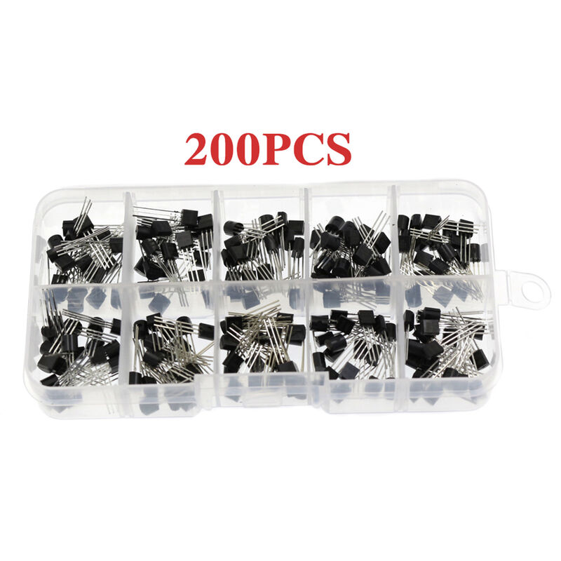 Caratteristiche: Transistor ampiamente utilizzati, abbastanza, adatti per progetti di elettronica fai-da-te, progetti di riparazione di veicoli, ecc. (Opzionale) Include 10 tipi di transistor P-NP NPN, per un totale di 200 pezzi per usi diversi./Include 15 tipi di transistor P-NP NPN, per un totale di 600 pezzi per usi diversi. (Opzionale) Modelli: (10 tipi) BC337, BC327, 2N2222, 2N2907, 2N3904, 2N3906, S8050, S8550, A1015, C1815/ (15 tipi) 2N222, 2N3904, 2N3906, 2N5401, 2N5551, A1015, C1815, C945, S8050, S8550, S9012, S9013, S9014, S9015, S9018 I transistor di qualità hanno un'elevata rigidità dielettrica, velocità di commutazione dei segnali elettrici veloci, bassa dissipazione di potenza, buone prestazioni di corrente. Ciascuno è conservato in una comoda custodia p-lastic trasparente assortita, ben organizzata. Specifiche: Materiale: materiali semiconduttori Colore: nero e argento (Facoltativo) Quantità: 1 # 200 pezzi (BC337, BC327, 2N2222, 2N2907, 2N3904, 2N3906, S8050, S8550