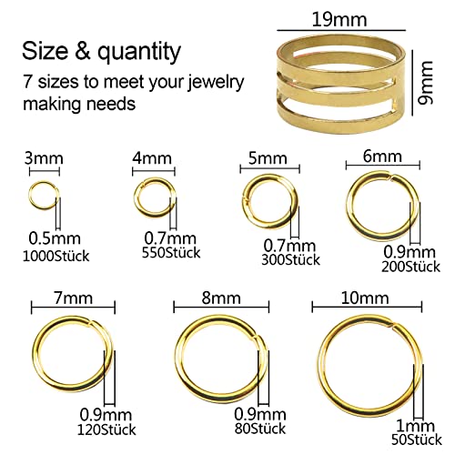 TOAOB 2300 pezzi Anellini Anelli di Salto Aperti Metallo Oro Tono con Strumento Anello 7 Dimensioni per Bigiotteria Fai Da Te Gioielli Collane Ciondoli Portachiavi 3 4 5 6 7 8 10 mm