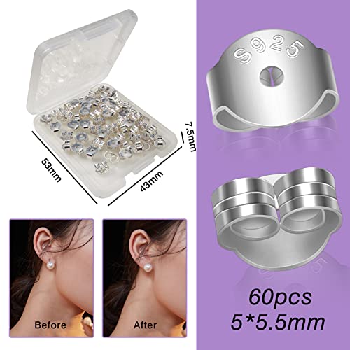 TOAOB 20 Pezzi Chiusure per Orecchini Anallergici Argento Sterling 925 Farfalla Ferma Orecchio Sicurezza Backs Support 5 x 5.5 mm per Orecchini a Perno e Ganci Orecchini