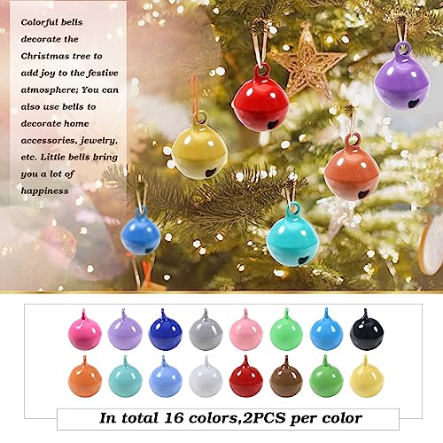 Confezione: inclusi 32 pezzi di campanellini metallici colorati da 14 mm, 16 colori, 2 pezzi di ogni colore