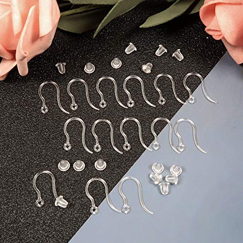 TOAOB 100 Pezzi Ganci Orecchini di Resina Trasparente Grande 14.5 x 17 mm Anallergici Monachelle e 4 mm Chiusure Ferma Orecchino Plastica per Creazione Orecchino Fai da Te