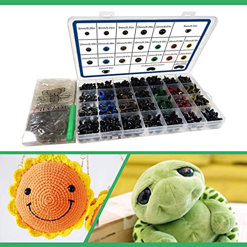 TOAOB 780 Pezzi Occhi per Bambole di Sicurezza Colorate Plastica Occhio 6mm 8mm 9mm 10mm 12 mm e Nero Nasi Triangolare con Rondelle per Fai da Te Lavoretti Pupazzi Crafts