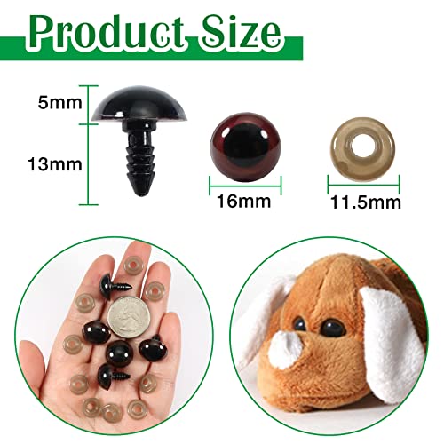 Pacchetto: contiene 150 pezzi di marrone occhi da 16 mm, 150 pezzi grigio di rondelle. Una buona selezione per l'artigianato fai-da-te