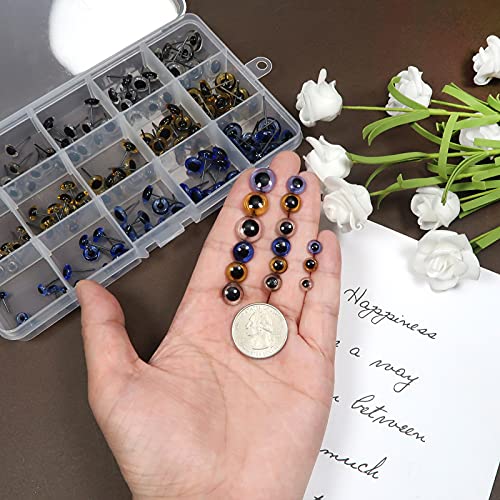 TOAOB 150 Pezzi Occhi Sicurezza Colorate Vetro 6 a 12 mm per Fai da Te Creazione Bambole Pupazzi Artigianato Marrone Blu Trasparente