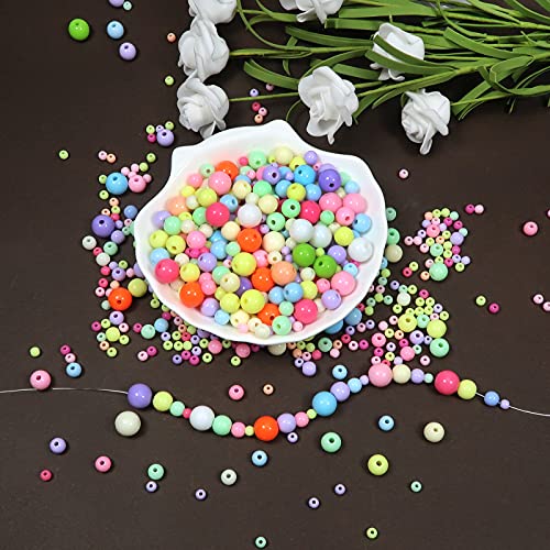 TOAOB 705 Pezzi Perline Colorate Acrilico Pastello Rotonde Acriliche Braccialetto Perline per Braccialetti Collane Fai da Te 4mm 6mm 8mm 10mm